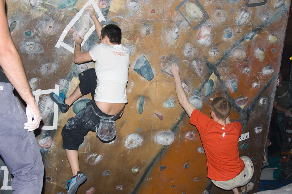 Zostaliśmy siłą zmuszeni przez Asię Zając, ale w sumie było fajnie. Towarzyskie spotkanie wieczorno-nocne w Fortecy. Z Dorotą, Moniką i Marcinem, dopingującym Maharadżą o Kulach, oraz fotografującą Asią z Wielkim Brzuchem 🙂 popełniliśmy kilkanaście baldów, z reguły z sukcesem 🙂 Wynik sportowy nie był może oszałamiający, ale po pierwsze płaciliśmy frycowe w debiucie, a po drugie nie było specjalnego parcia na szkło. Z kilku baldów jestem zadowolony, kilka mogłem zrobić więcej (w poniedziałek puszczały bez problemu), ale najlepsze jaja były jak obserwowałem innych – tam gdzie ja walczyłem „na motyla” o życie – okazywało się, że da się pięknie, lekko i technicznie 😀